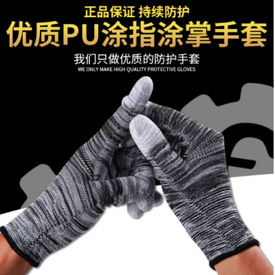 PU涂指涂掌手套劳保耐磨工作防滑尼龙浸涂胶劳动干活薄款胶皮透气