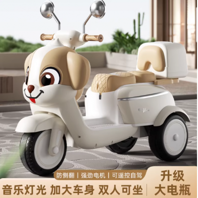 儿童电动摩托车男女孩三轮电动车可坐人遥控双人小孩可充电玩具车